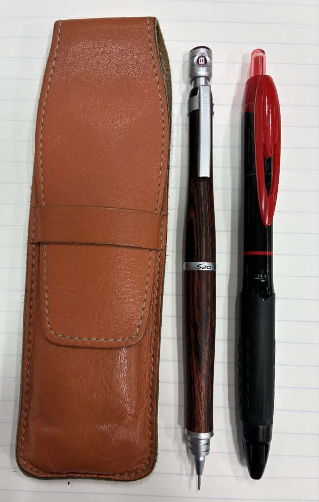 筆記用具にはこだわるほうで、シャープペンシルはパイロットの製図用S20(0.5mm)マホガニーの木軸を永年使っています。赤ペンは、書き味が良いゲルボールペンで、全体的なデザインとゴムのすべり止めが気に入っている三菱鉛筆シグノ307(0.7mm)を、替芯を何回も交換するほど使っています。そして、一番のお気に入りは、万年筆「カヴェコ・ブラス・スポーツ(Kaweco BRASS Sport)」です。
