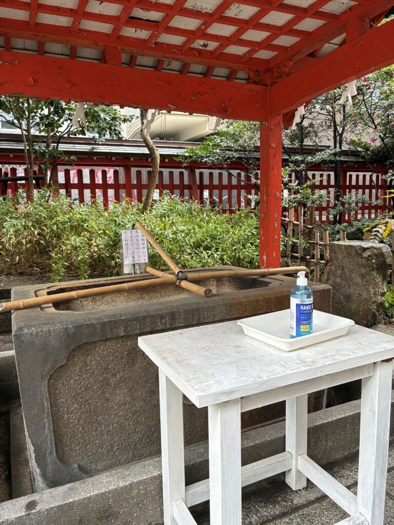 参拝にあたって手水舎に向かうと、手水の水は止められて、代わりに消毒液が置かれています。消毒液はコロナ禍で馴染みになりましたが、少々風情が足らないなと思ったところ、実状は少し異なるようです。福岡はそもそも水不足に悩まされている土地柄で、人口に比べて高い山や大きな河川が少なく、年間降水量が梅雨期と台風期に集中するため、それ以外の時期は水が不足しているようです。大規模な開発で最先端の利便性を享受できるのだけれども、ちょっとした気象の気まぐれで、日常生活に支障が出てしまう、人間生活の脆弱さを垣間見た気がします。