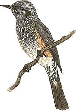 ボサボサ頭で、全体が灰色に見える色彩の鳥です。虫や草の葉、芽も食べますが、花の蜜や果実が大好物で、花が咲くと蜜を吸いにやってきます。