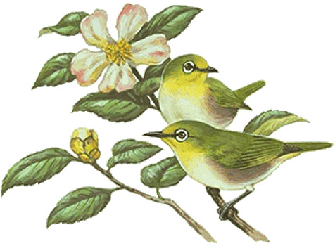 全国の平地から山地の林にすんでいます。特徴は、目の周りの白い羽毛のフチドリと、からだの鮮やかな黄緑色です。花の蜜が好きで、エサ台に砂糖水やジュースを置くと、よく飲みに来ます。